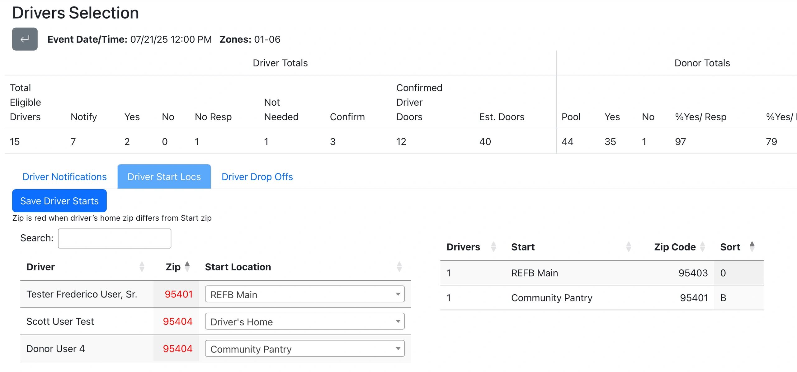Note how each confirmed driver has a different starting point. These starting points are defined in the LOCATIONS tool under ADMIN.