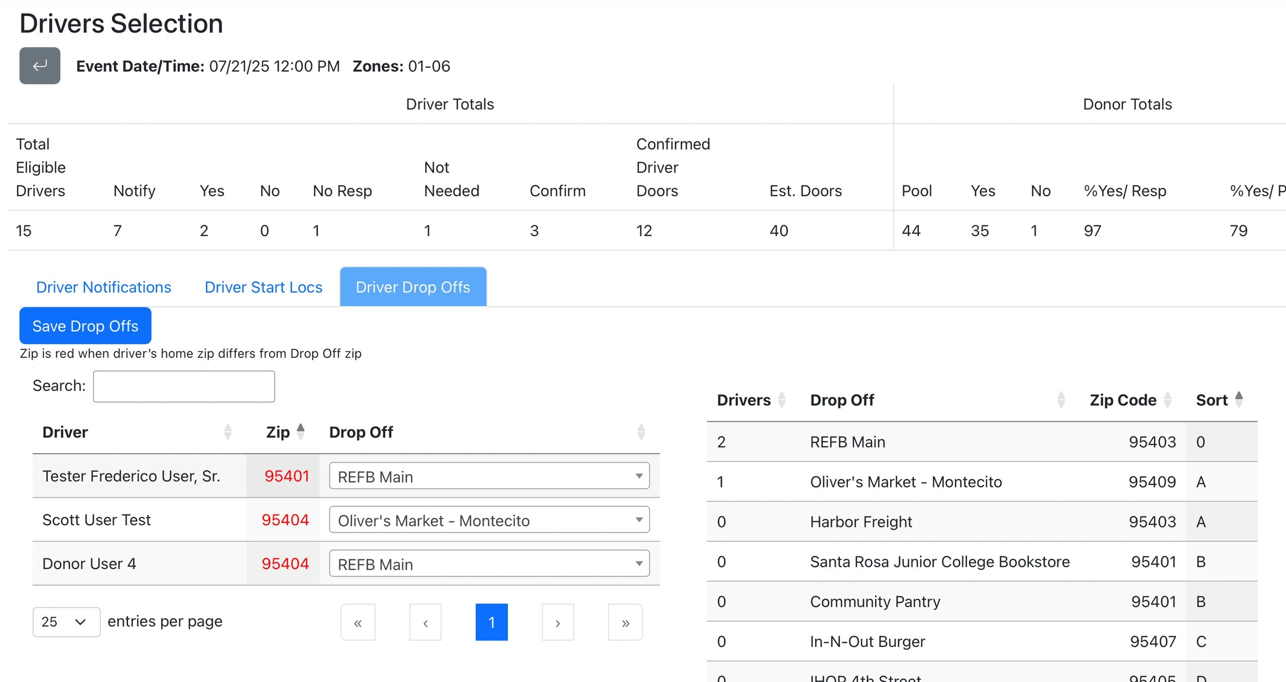NOT ENOUGH DRIVERSSco: This is going to happen from time to time. We recommend using the Donor History reports to find donors with a high degree of participation. Send them an email asking them to driver. (Or call them if you have the time). Or, you can just message every donor using the “Messaging App”. If someone agrees to drive, they (or You) can go to their profile and click “Yes I want to Drive”.