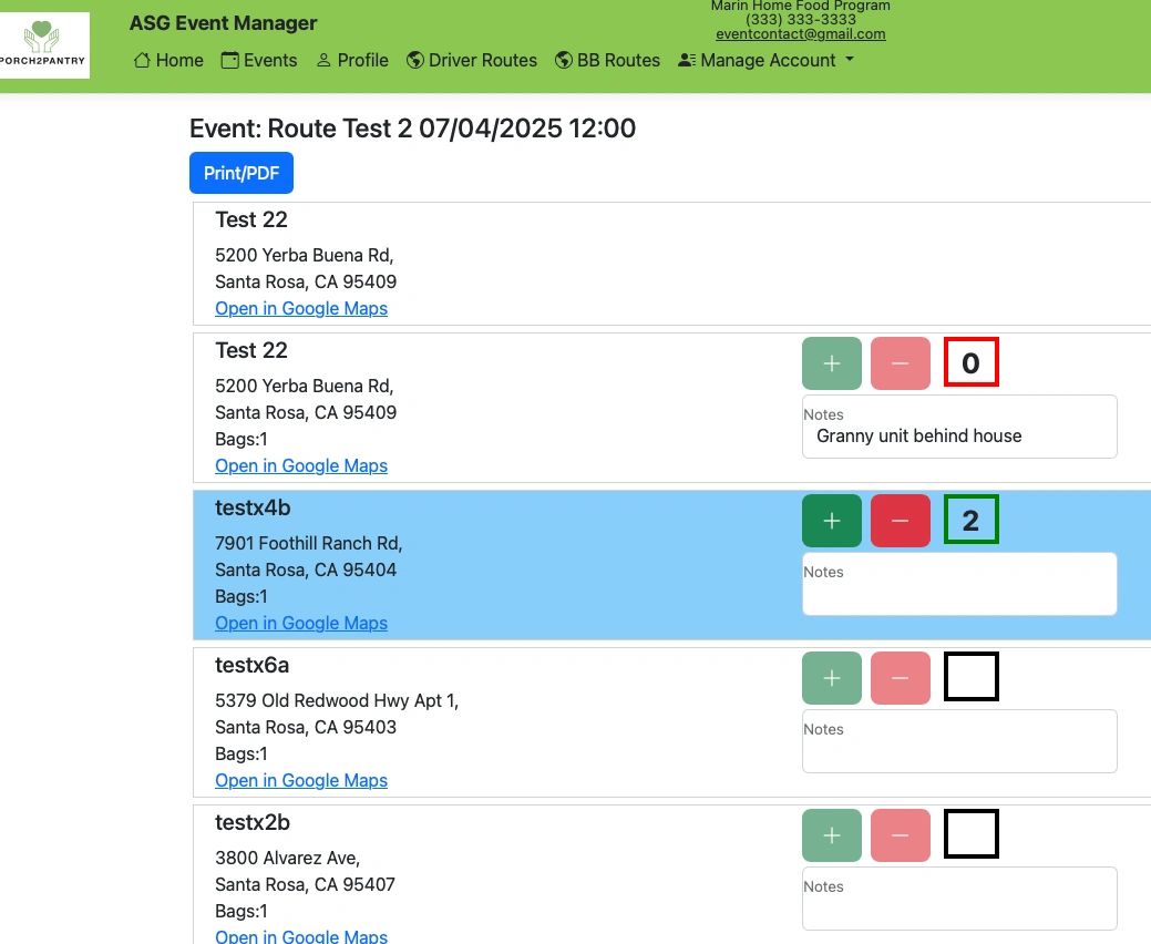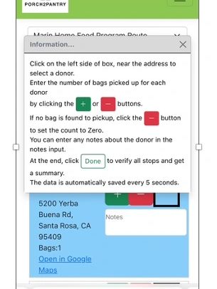 NOTE: the final address is the "drop off" pantry. Drivers should plan for 30 minutes at the drop off to help sort if the pantry needs the help;.