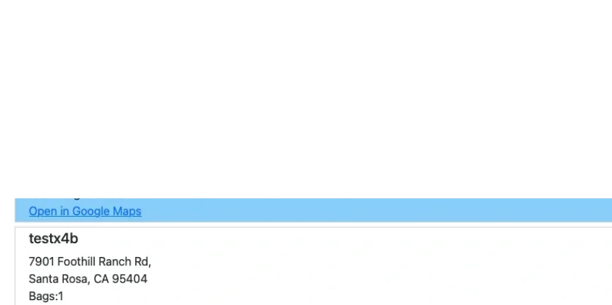 Click "Open Google Maps" (download if you need this app) to get to 1st stop. Press +- arrows to set bag quantity. If NO BAG, set qty to 0 and go to next stop.